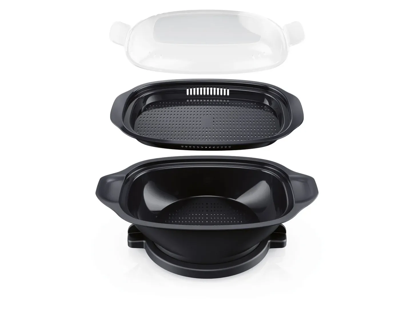 - Accessories: large, removable stainless steel mixing container with a cooking volume of 3 litres with a capacity of 4.5 litres including lid with filling opening, one-handed handle and measuring cup, steamer attachment (deep and flat) with lid, cooking insert, knife insert, mixing attachment and spatula, all accessories are dishwasher safe and BPA-free